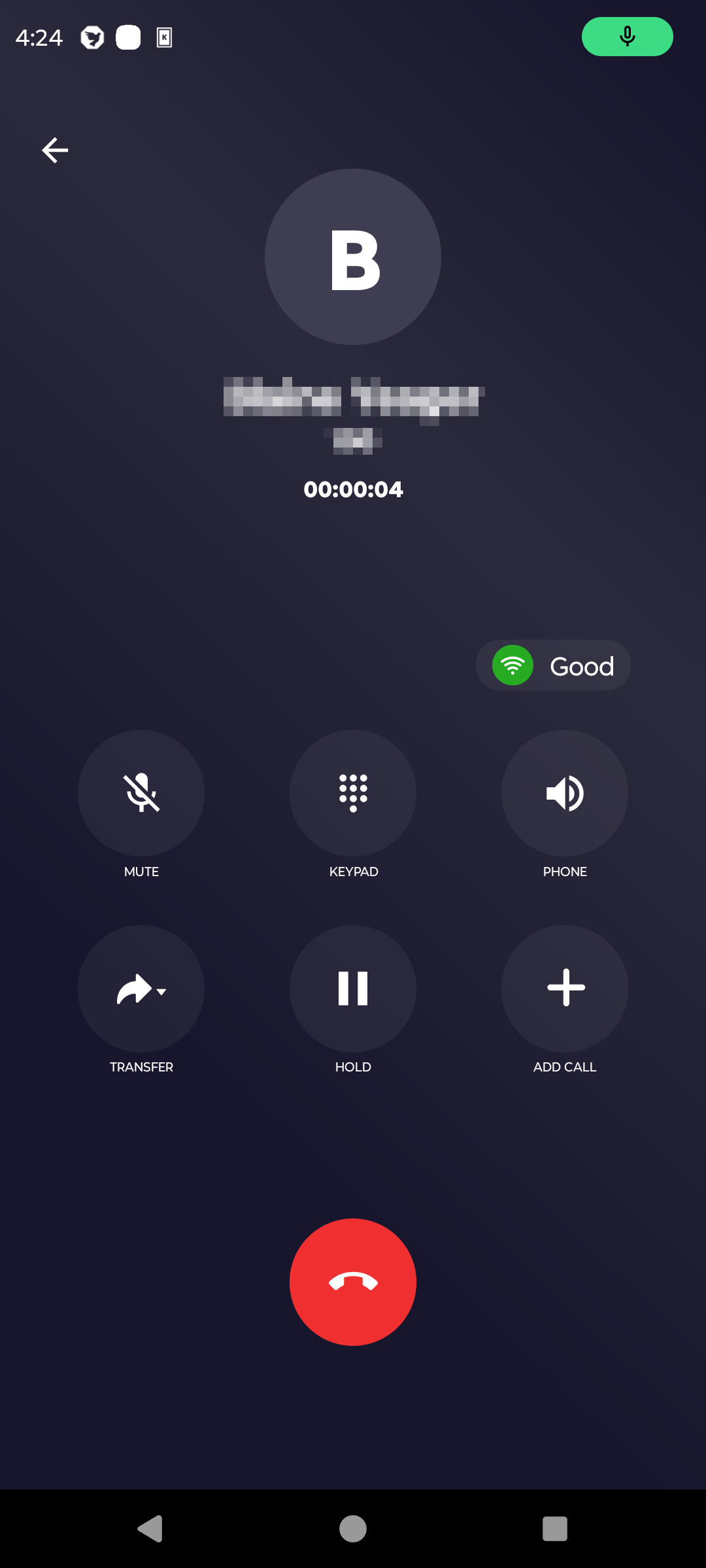 Once a call is placed, the ongoing audio or video call screen will appear as shown below, giving you easy access to in-call controls and features.