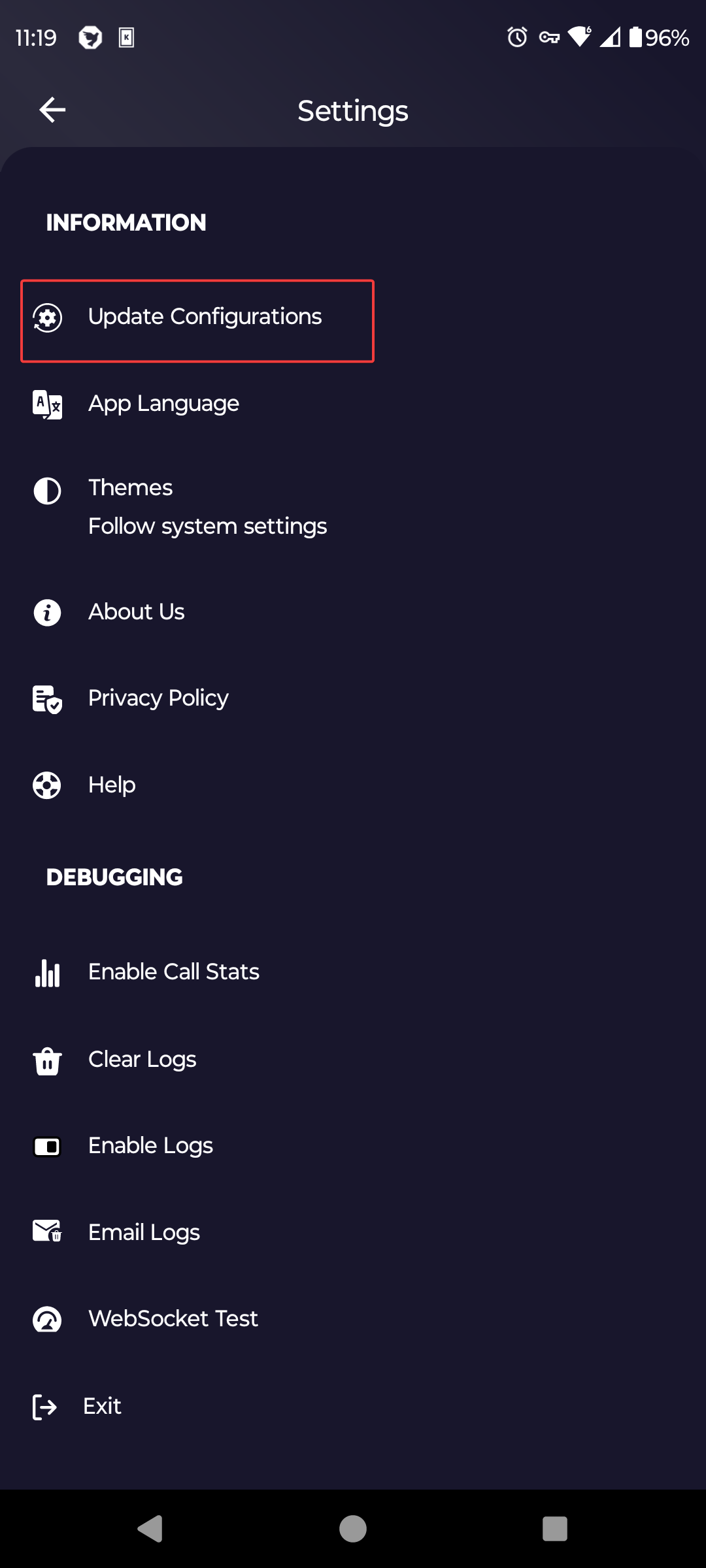 - You can tap on Update Configurations to sync your app with the latest updates.
