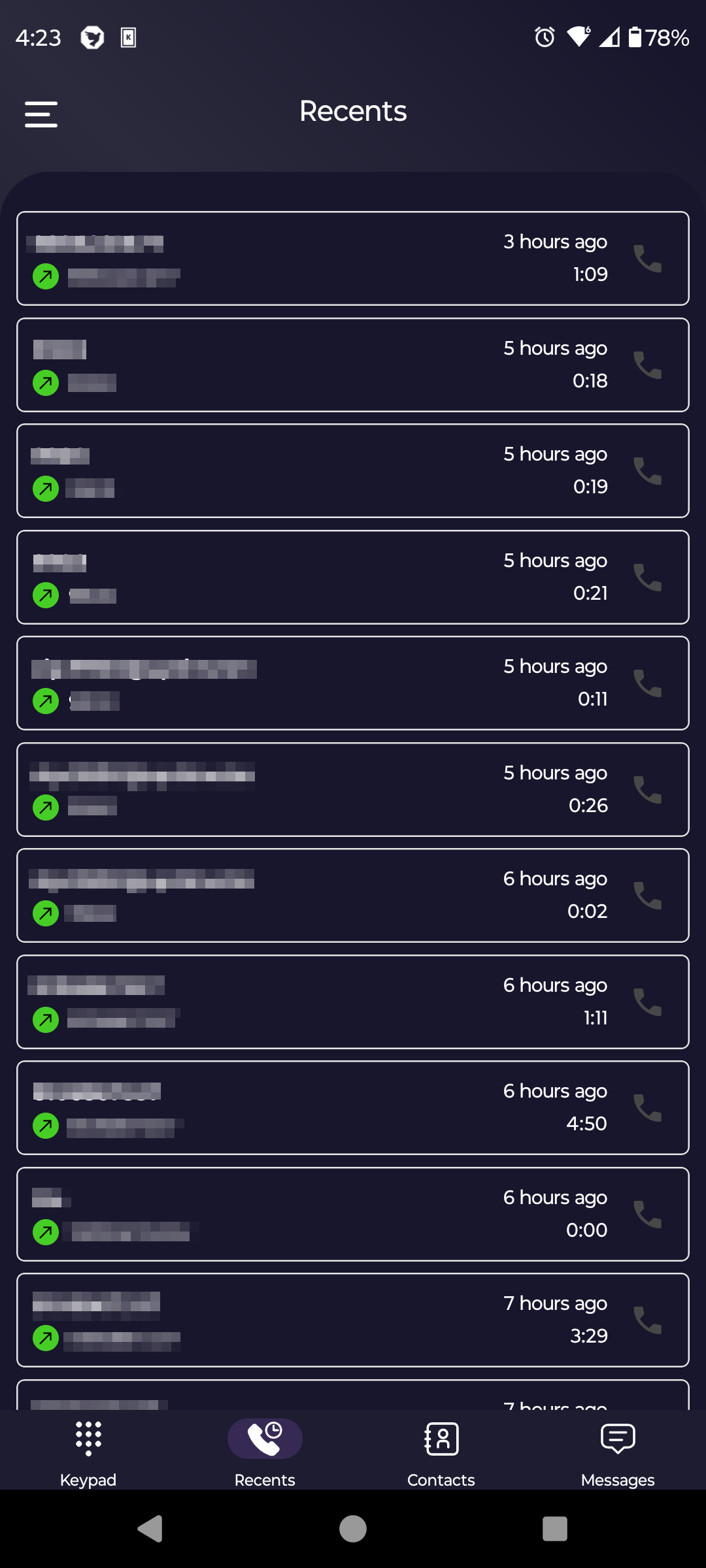 - Tap the Recent tab to view recent calls from the bottom navigation bar.