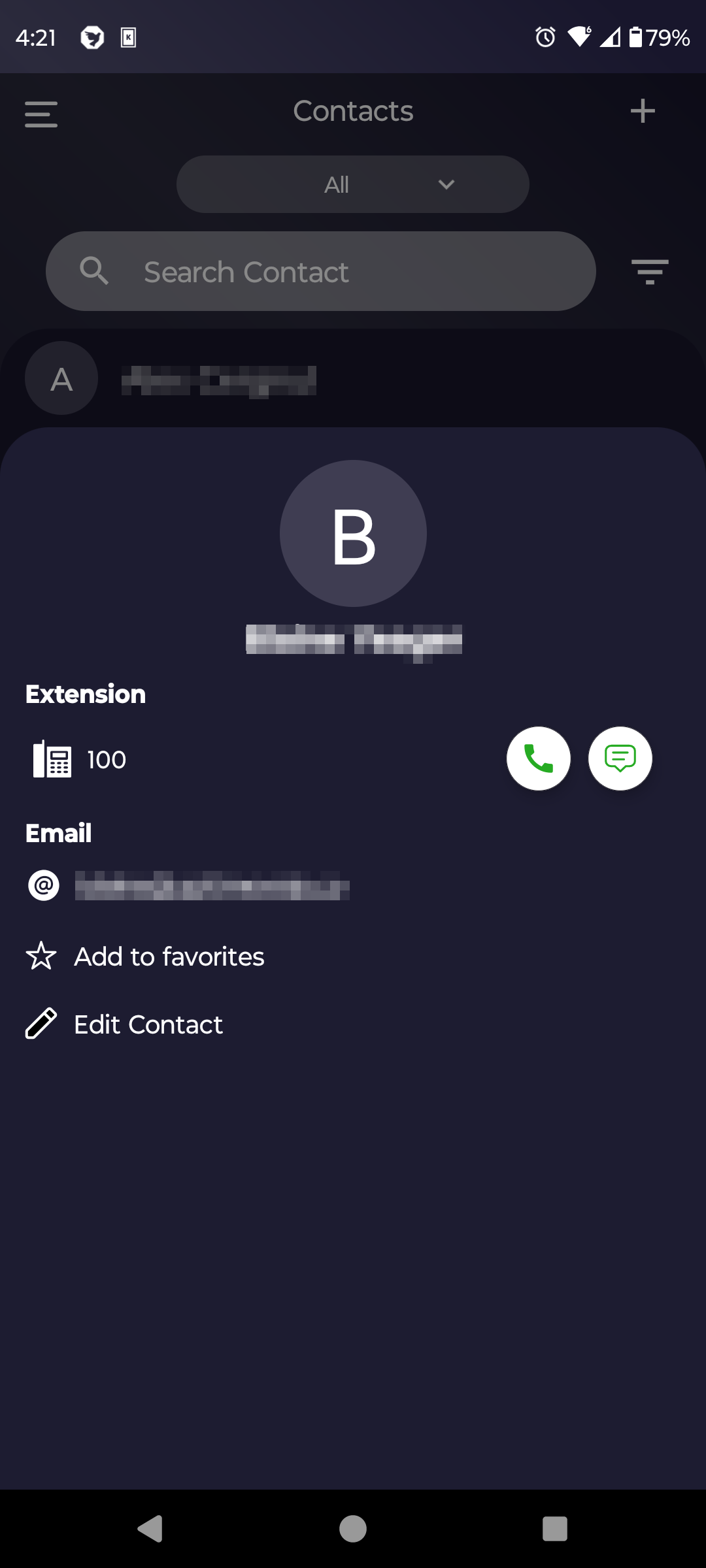 - Select the desired contact from the list to view their details, along with the available calling options.