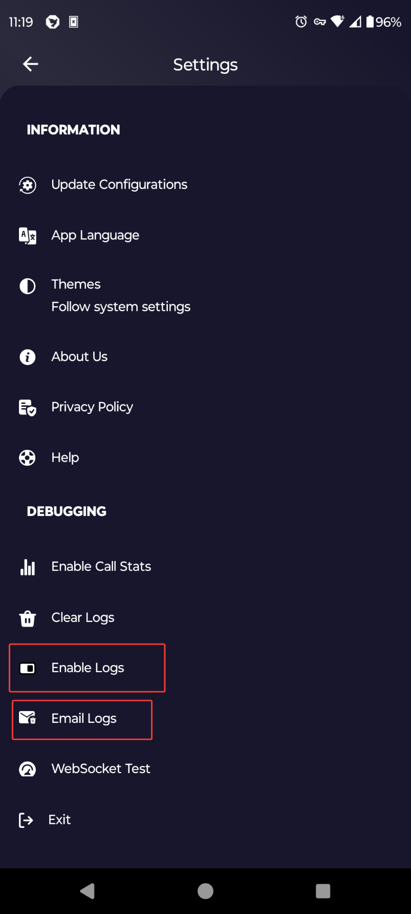 To assist with faster diagnosis and resolution of issues, you can share logs directly from the UptimeConnect app. These logs provide essential technical details about recent activity, helping our support team troubleshoot effectively. Follow the steps below to securely send your logs to the Support team: